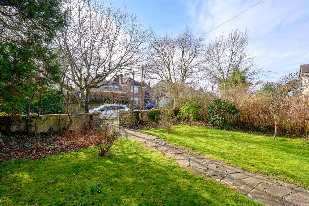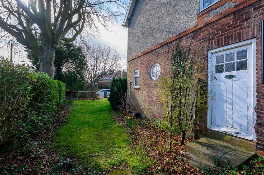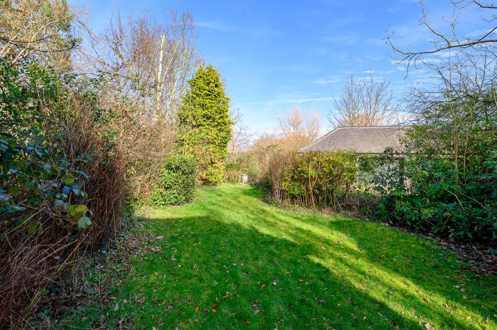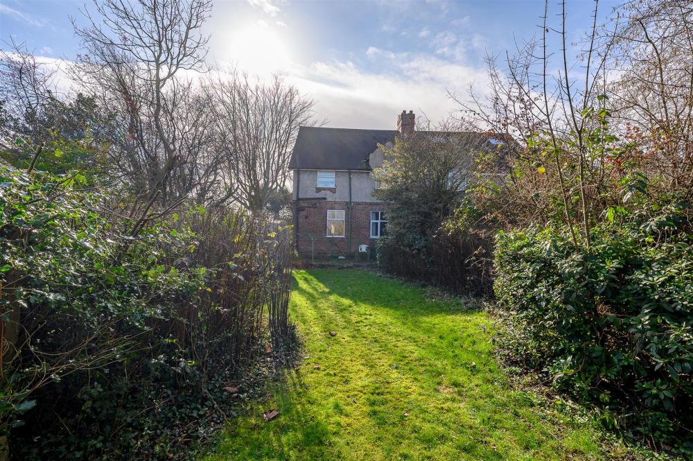 The property is set back from the street and enjoys private gardens which wrap around three sides. In addition, an adjacent, shared access driveway leads to a single garage.