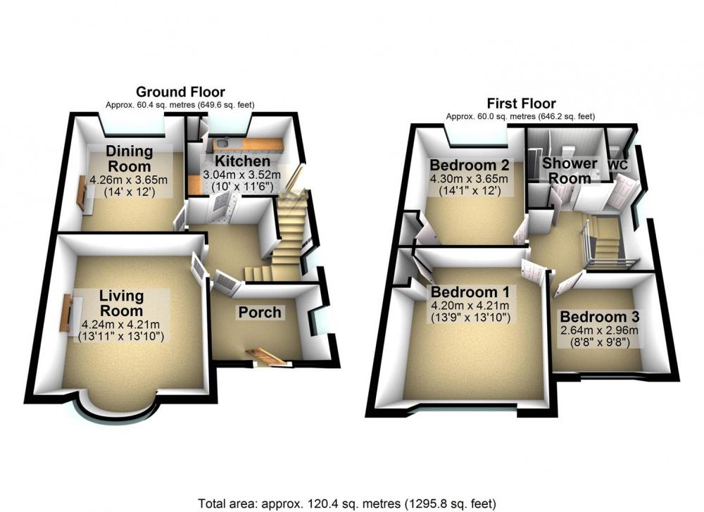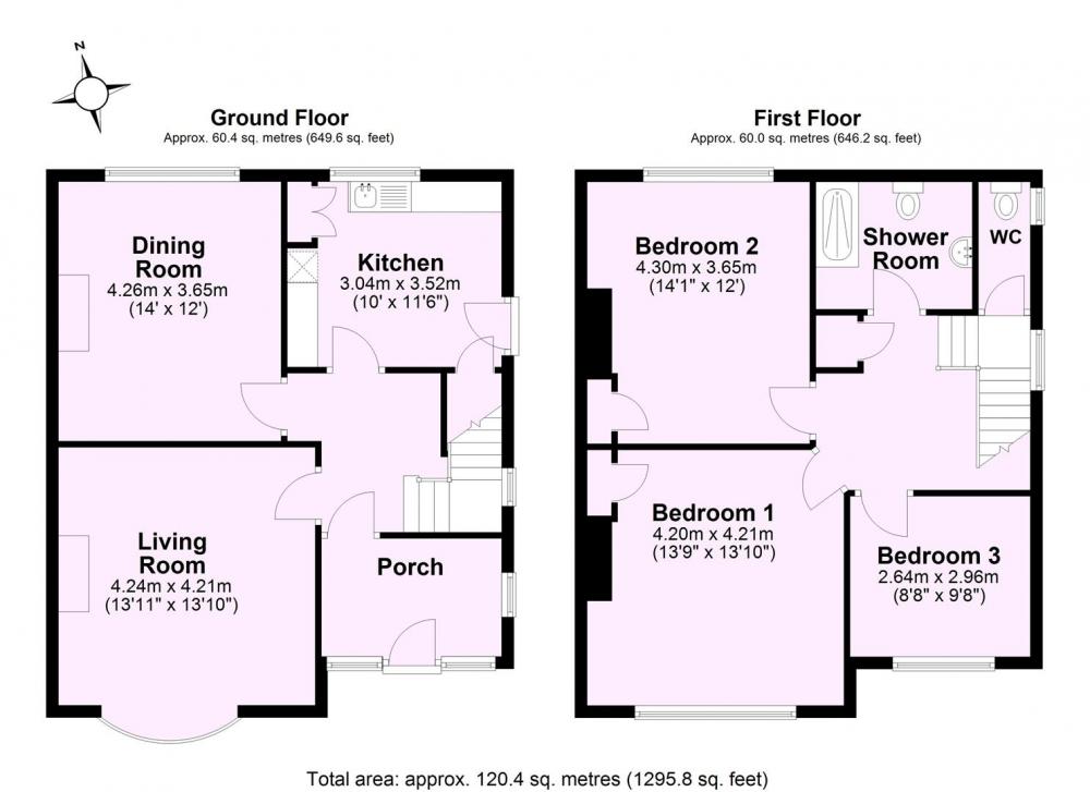 To the first floor, a spacious landing leads to three well proportioned bedrooms , each served by the family shower room, and a separate WC.