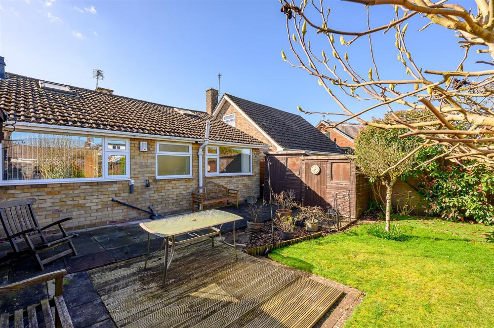 To the rear is a well maintained, predominantly lawned garden with seating areas and borders containing an excellent variety of plants and shrubs.