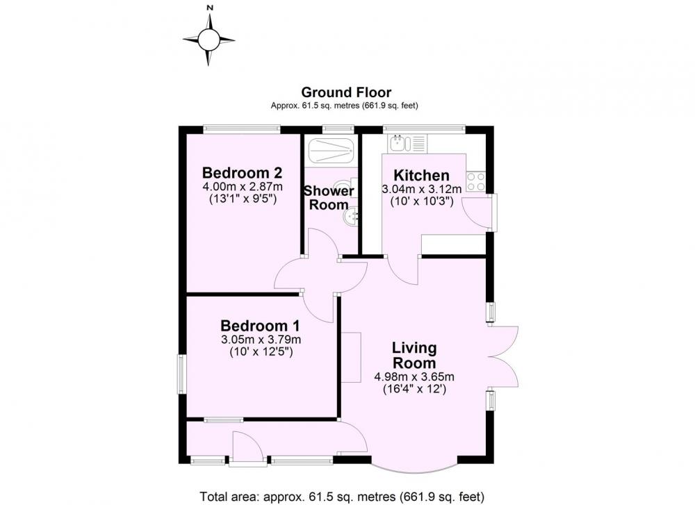 The front door opens into a sunny glazed porch before you continue through to the 16ft living room. This room is bright and airy with a wide bay window to the front elevation and French doors that open to the side of the property near the car port. The room offers excellent space for relaxing and features a fireplace with electric fire for cosy nights at home. From the lounge you either enter the kitchen or continue through to an inner lobby, off which you will find the two bedrooms and shower room. The property also has loft ladder to boarded loft with Velux window.