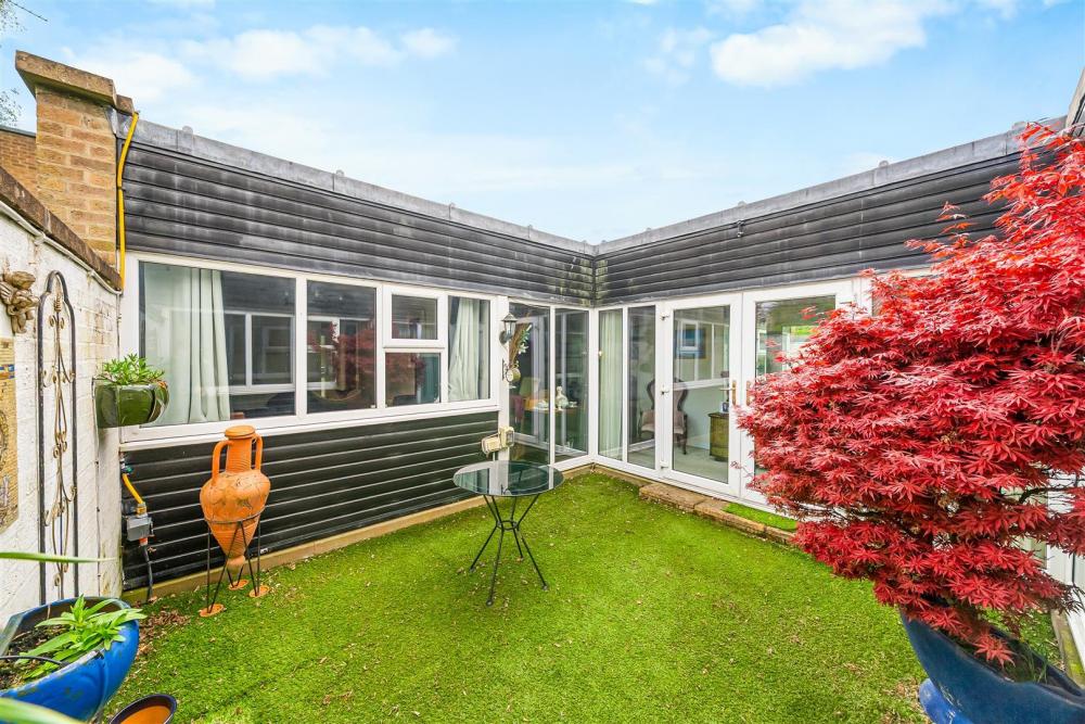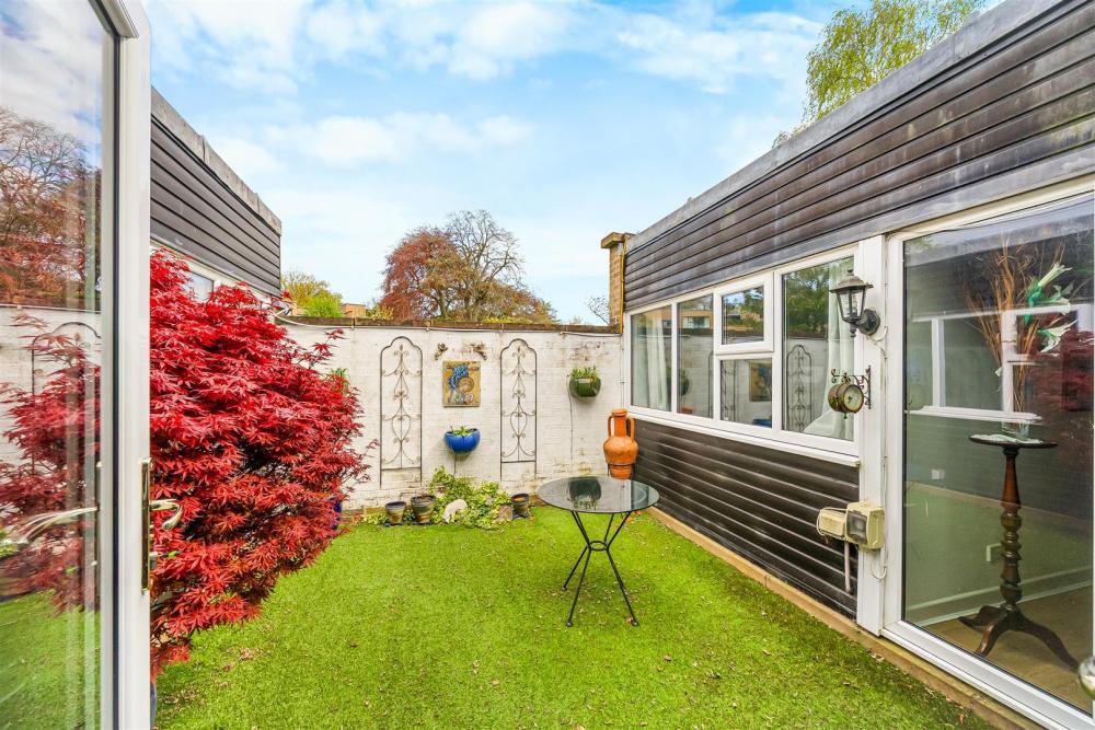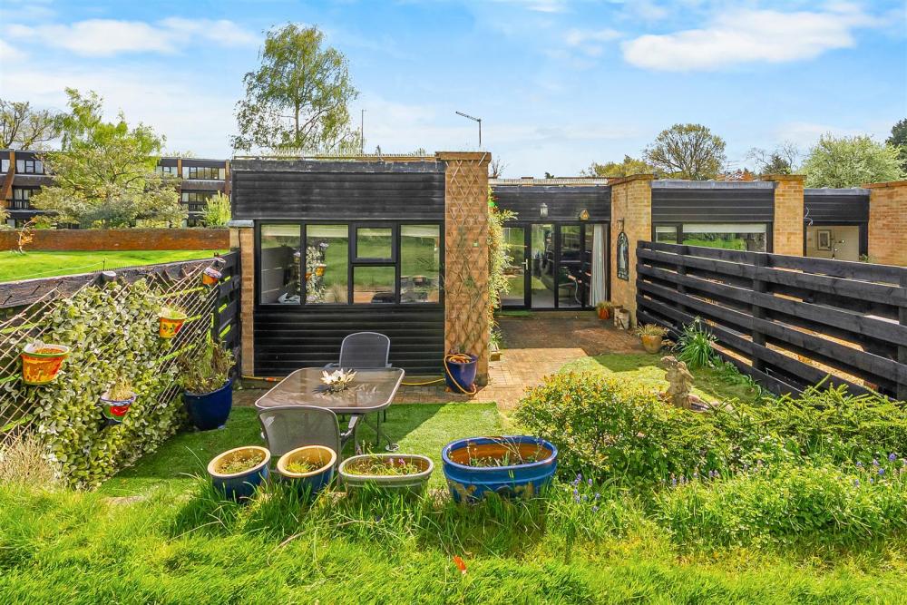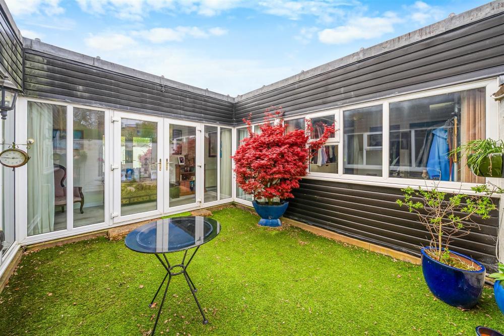 An unusual, contemporary and surprisingly spacious SINGLE STOREY END TERRACED BUNGALOW offering four bedrooms, two shower rooms and large living accommodation together with gardens, a central courtyard and garage.