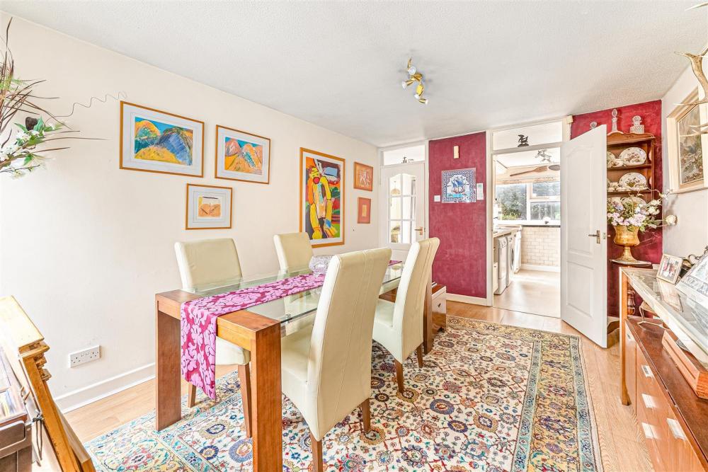 You first step into the dining area, with a door leading to the well-appointed kitchen, fitted with an excellent range of modern units, an integrated eye-level oven, ceramic hob with extractor hood over, and space for a tall fridge/freezer, together with plumbing for under-counter appliances.