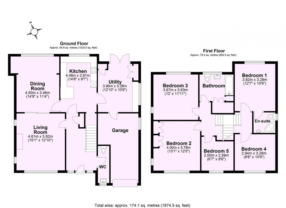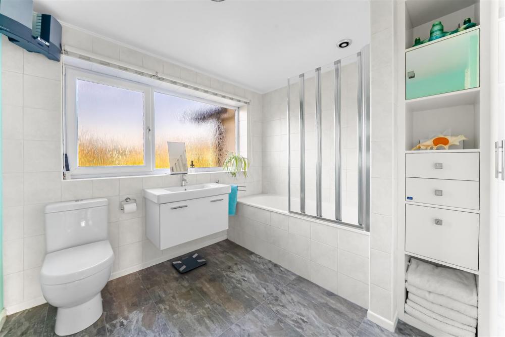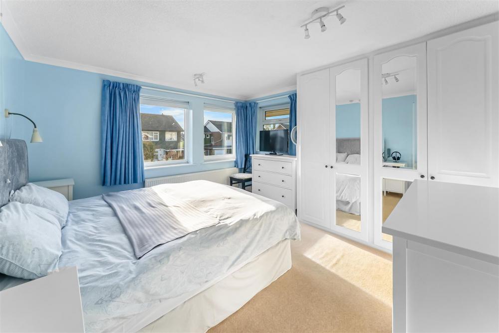 The first floor comprises a generous principal bedroom with en-suite shower room, along with four further well-proportioned bedrooms. These are served by a modern family bathroom with large airing cupboard and fitted with a bath and shower over.