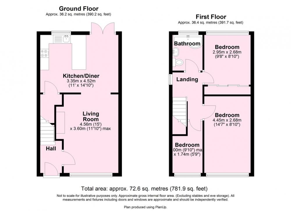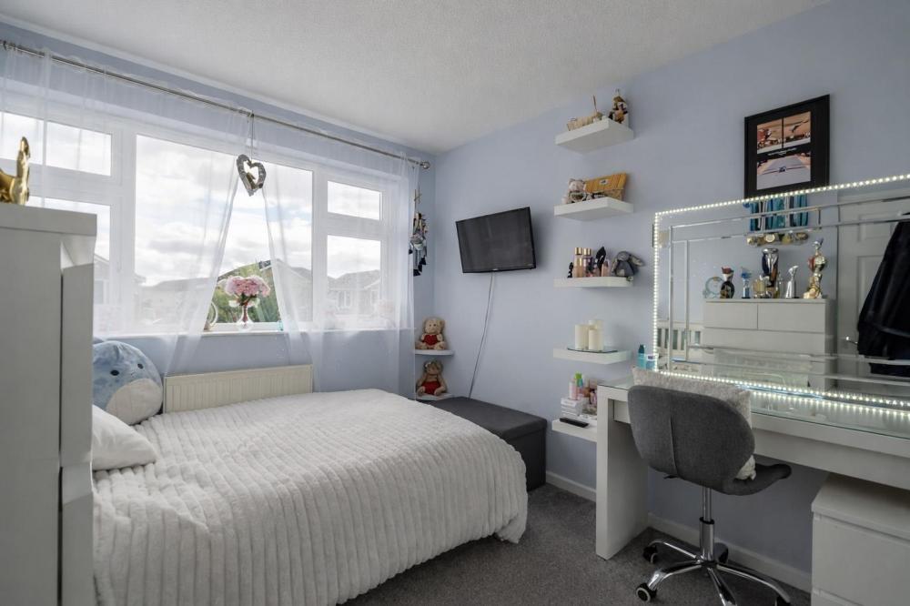 A first floor landing serves three bedrooms, bedroom two has fitted wardrobes and a modern house bathroom.