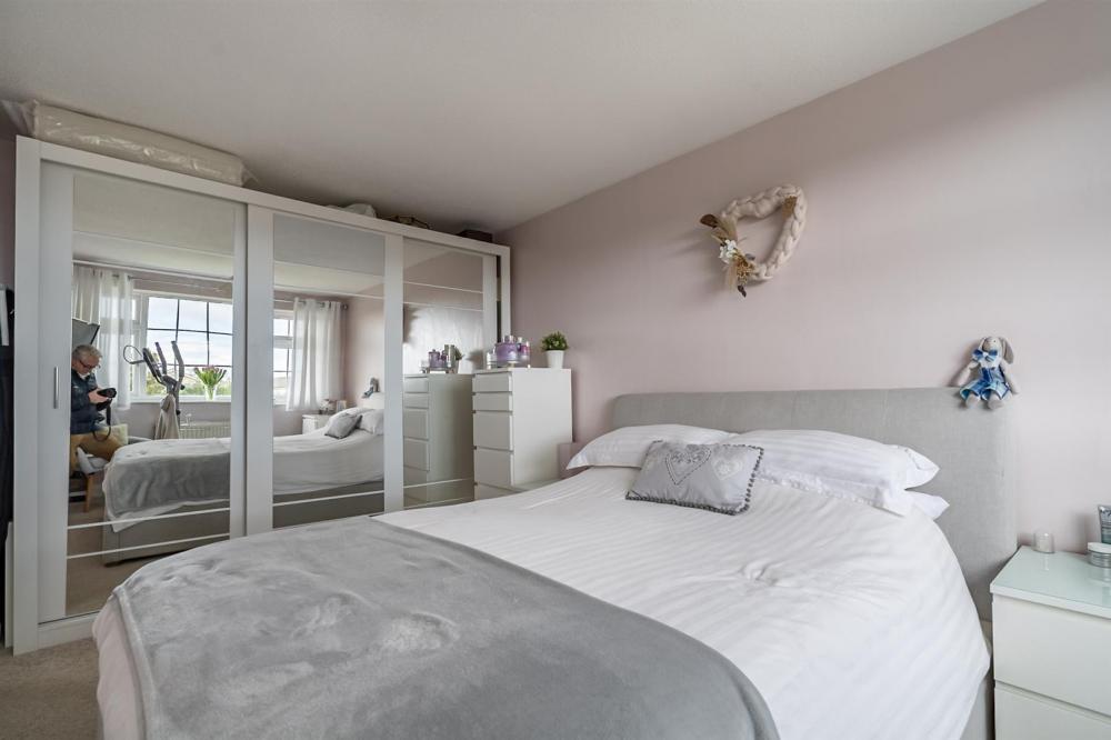 Externally, the property is set well back from the road with a front lawned garden and driveway providing ample off-road parking. Side gated access opens to a side low maintenance area with timber shed and leads to a rear garden, with raised decked seating area, a patio terrace and artificial grass.