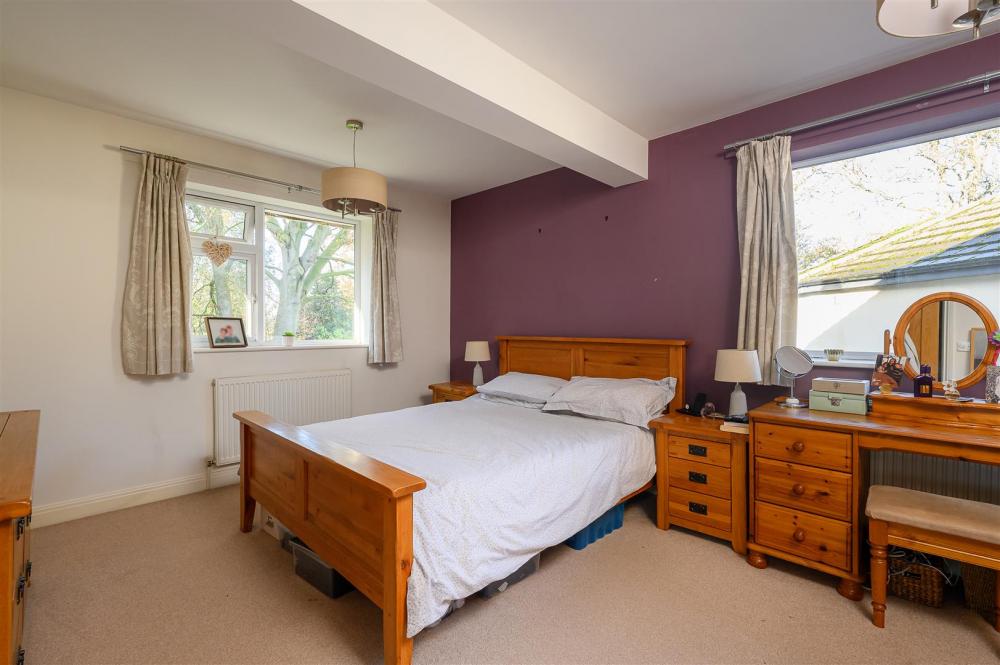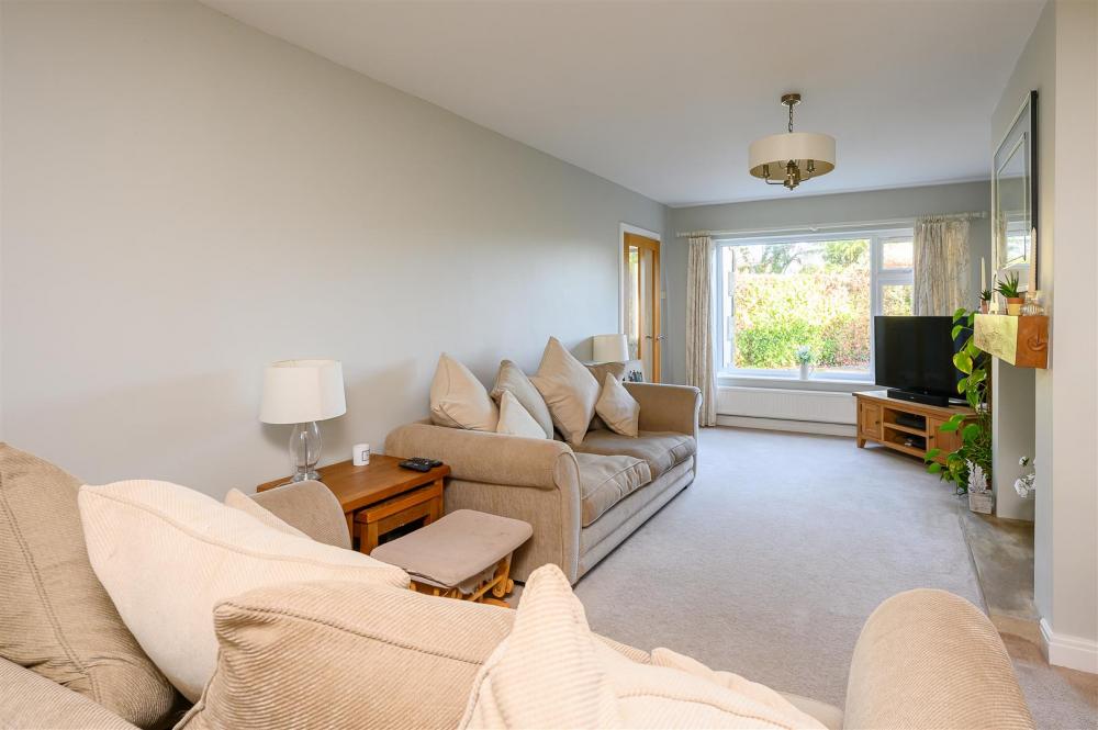 The property is approached via a private driveway leading to the integral single garage and front entrance. Inside, the spacious living room enjoys large windows to both the front and rear, filling the space with natural light and creating a bright, airy atmosphere.