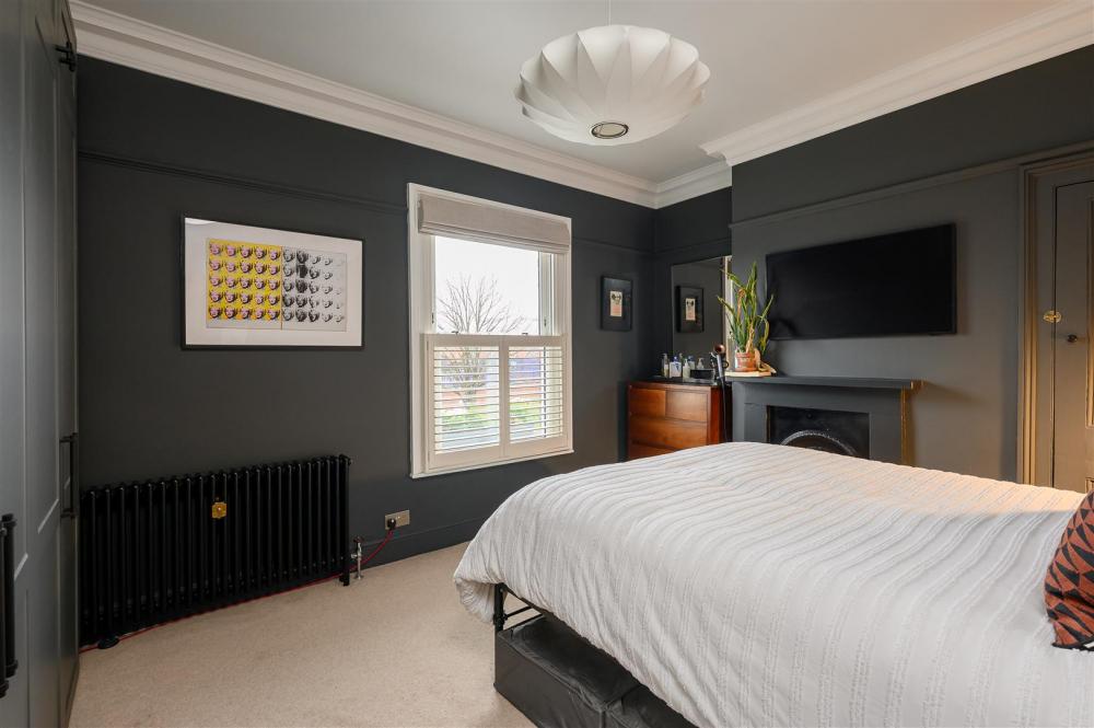To the first floor, the principle bedroom lies to the front, generous in size, with built in wardrobes, and ornamental cast iron fireplace. A second double bedroom overlooks the garden to the rear and also features a period fireplace. Each of the bedrooms are served by a beautiful family bathroom with claw foot bath and separate shower cubicle together with a Burlington sink and WC.