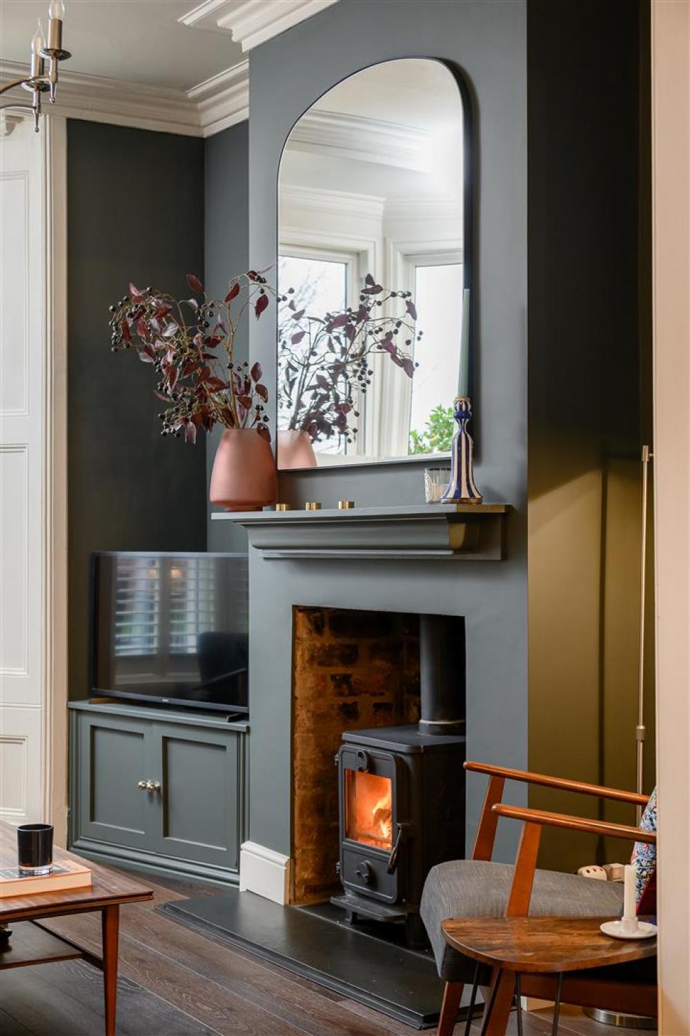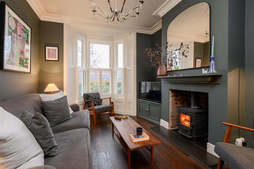 Upon entering the property, the inviting entrance hall, with original mosaic tiles, draws you into the open plan living and dining room, complete with plantation shutters, bespoke storage, log burning stove, and engineered wood flooring.
