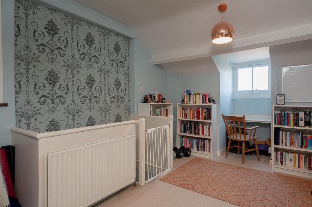 To the first floor there are two generous double bedrooms, a third single bedroom and the recently renovated family bathroom with feature fireplace and stylish brass fittings.