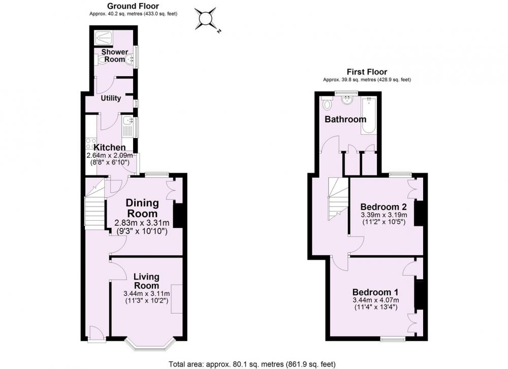 To the first floor, the landing leads to two generous double bedrooms with fitted wall cupboards, one with the original fireplace, and these are served by the house bathroom.