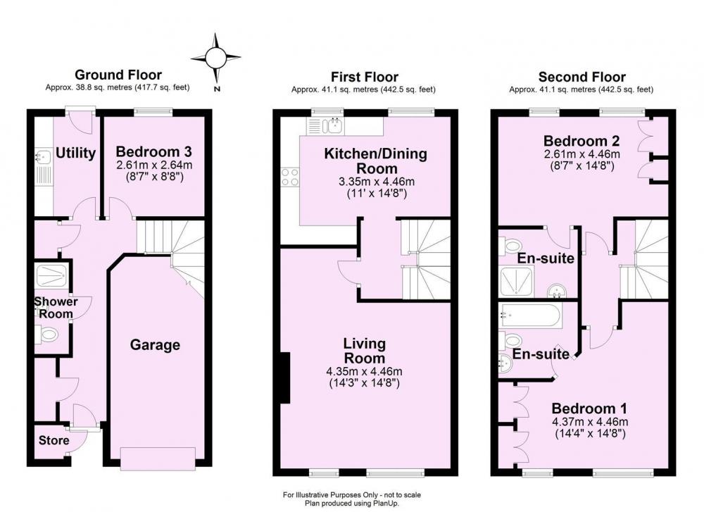 The second floor provides two generous double bedrooms, one with en-suite shower room and the other with en-suite bathroom. Externally, the south facing rear garden is predominantly lawned with patio area and a gate providing access for bins.