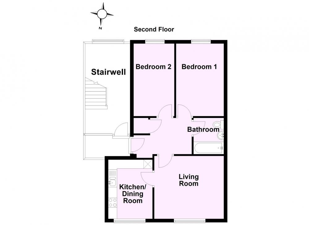 A communal staircase leads up to the apartment. Upon entering you are welcomed by the spacious reception hall leading off to the living room offering ample space for seating arrangements. The fitted kitchen has plenty of room for a small breakfast table. The bathroom is fitted with a white suite and there are two double bedrooms.