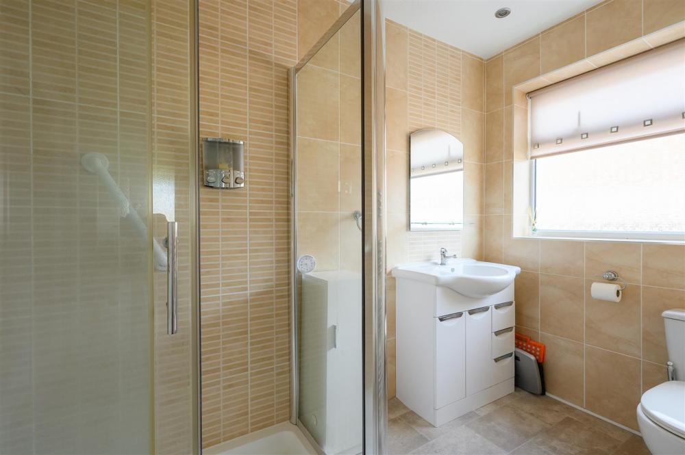 To the rear of the property are two generously sized bedrooms, both benefiting from a peaceful outlook over the garden and served by a contemporary shower room featuring a walk-in shower.