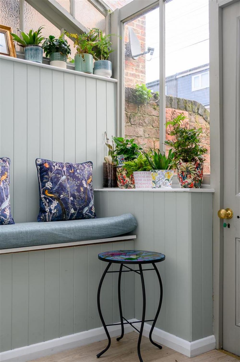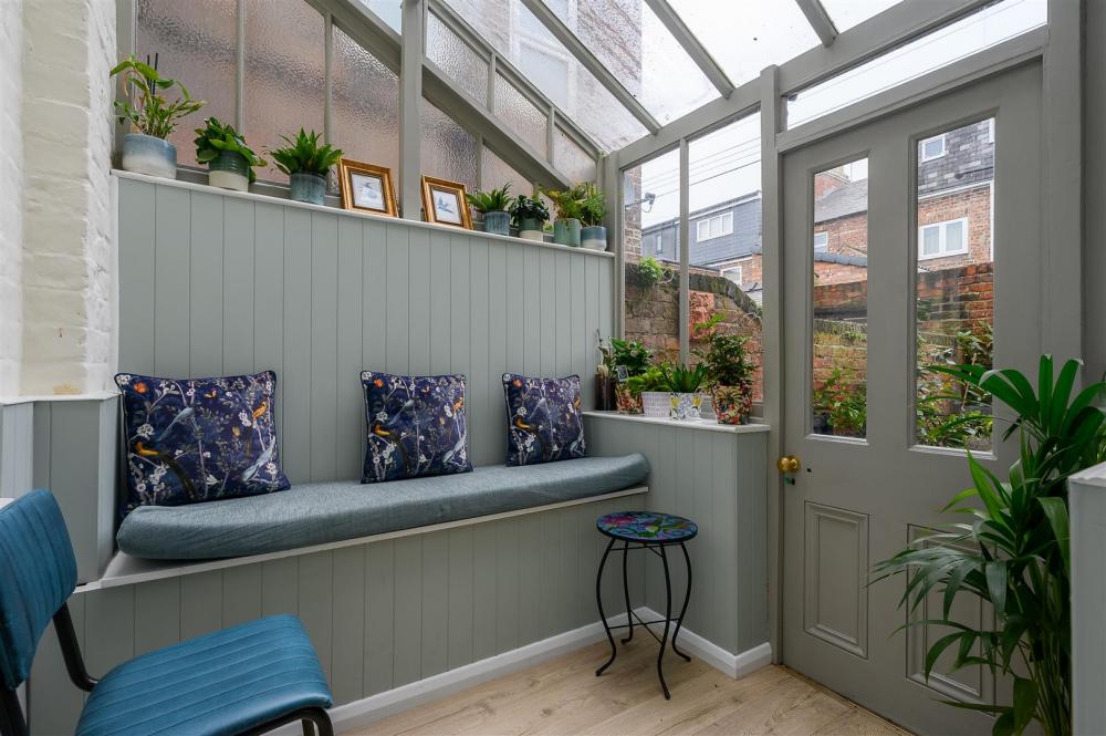 The charming flagged courtyard garden is currently well stocked with a number of potted plants and provides valuable outside alfresco dining space.