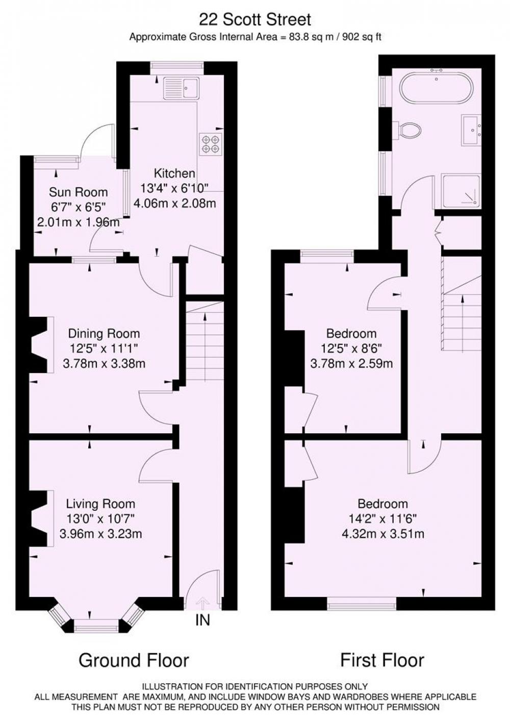 The staircase at the end of the entrance hall takes you to the first floor landing off which are the two good sized double bedrooms and the house bathroom with a free standing claw foot bath with hand held shower, a separate shower cubicle and white suite. There is also access to the fully boarded loft which has a Velux window, flooding the space with natural light.