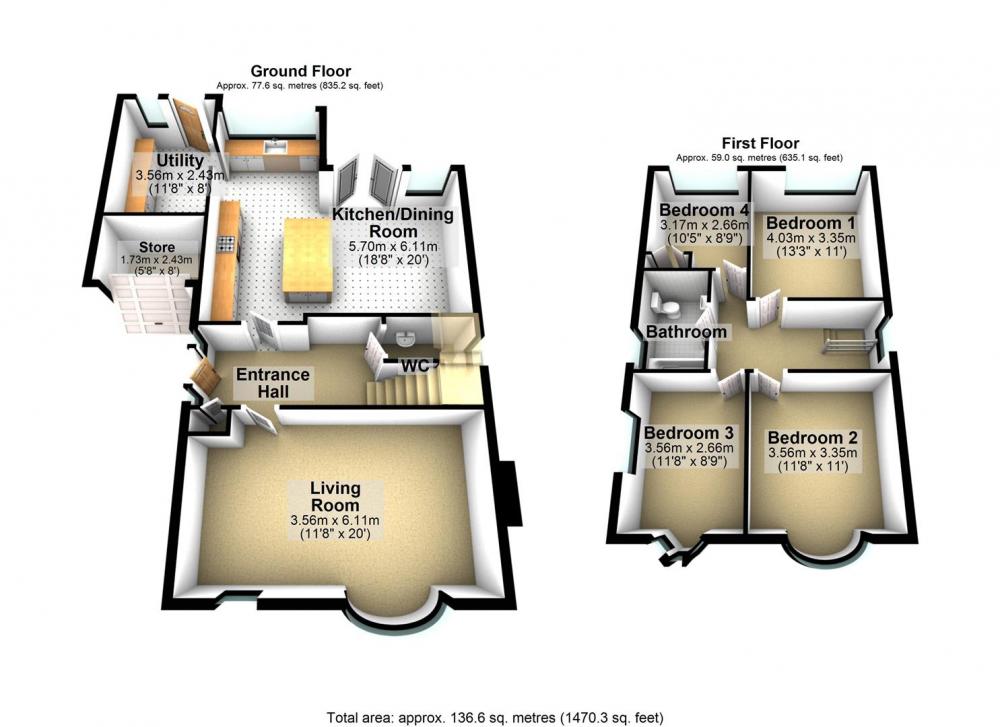 The first floor landing serves four double bedrooms and a modern house bathroom, with shower over bath.