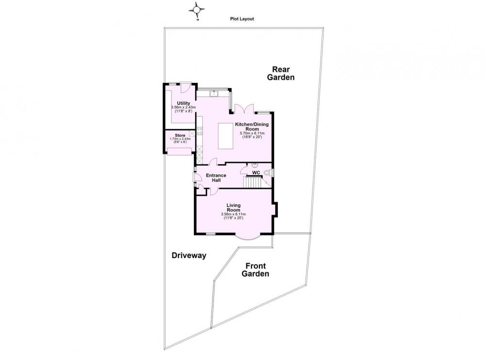 The modern open plan kitchen/dining/snug has a range of bespoke units with white quartz worktops, an inset five burner gas hob, with extractor hood over and electric double oven, a central island with breakfast bar and further integrated appliances, including a separate fridge & freezer, dishwasher, wine fridge and Quooker hot tap. The snug seating area has a feature floor to ceiling radiator and has double doors opening to the enclosed rear garden. A utility room is open from the kitchen featuring bespoke units, again with white quartz work tops, plumbing and space for a washing machine, dryer and a door leading to the rear garden.