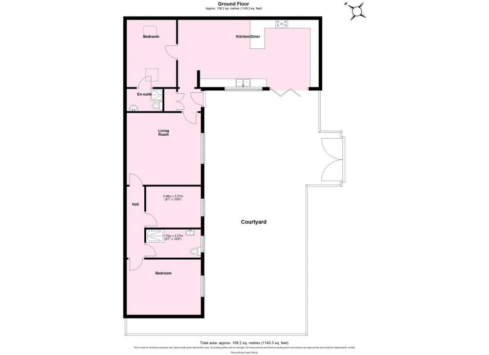 An entrance hallway with large cupboard provides access to a double bedroom with modern en-suite shower room and a spacious lounge with a window overlooking the courtyard. An internal hallway with an electric Velux window, serves two further bedrooms and a luxury newly fitted shower room, with walk-in shower and glazed screen.