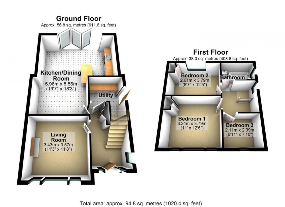 Continuing to the first floor, there are two double bedrooms and a single bedroom together with a modern, stylish family bathroom with shower over bath.