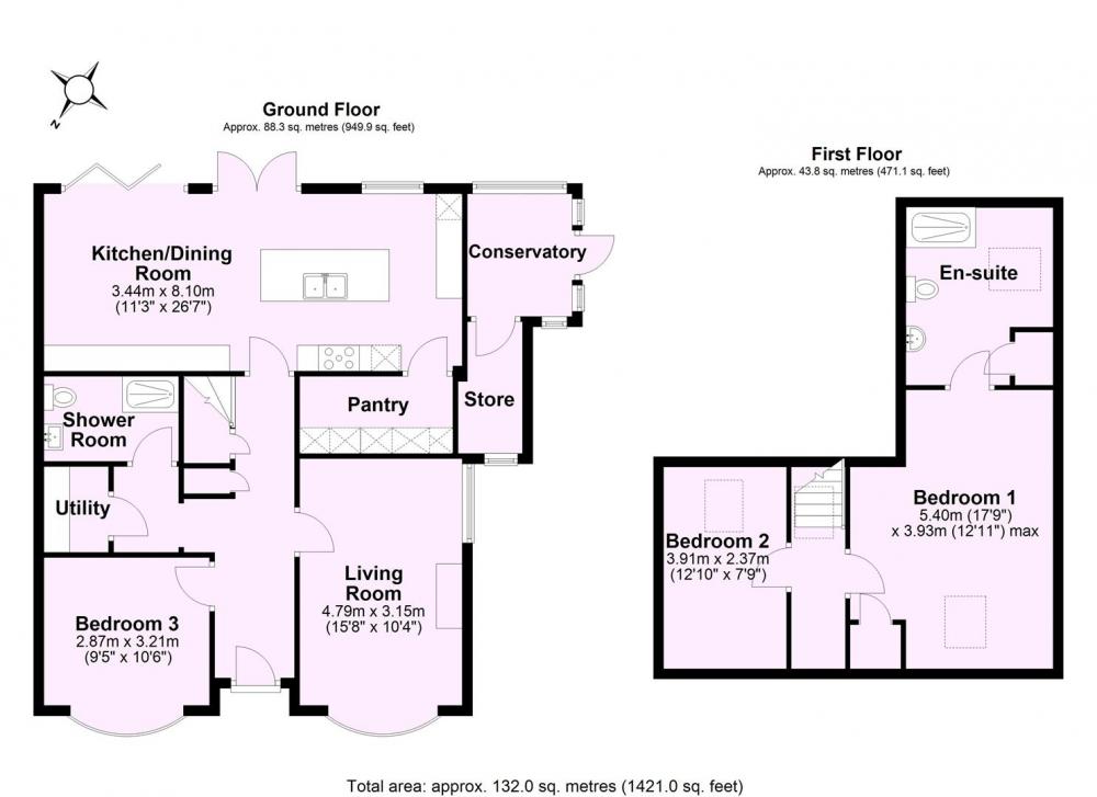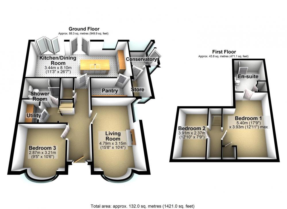 The front door opens to a welcoming hallway, with stairs leading to the first floor and serves all ground floor rooms. Straight ahead is the open plan kitchen/dining/living space, with quality fitted units, a central island and breakfast bar. Integrated appliances include a fridge/freezer, dishwasher, ceramic hob with extractor hood over and electric double oven. Bi-folding doors and French doors open to the rear garden and there is also a large walk-in pantry with floor to ceiling units. To the front is a bay fronted lounge with dual aspect windows, a bedroom with bay window, a utility room and luxury shower room.