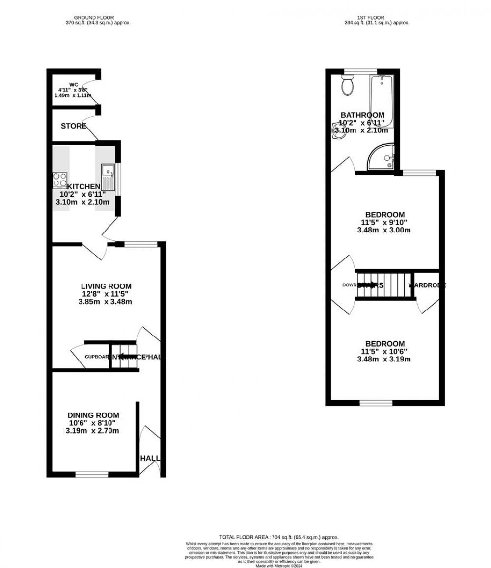 On the first floor there are two generous double bedrooms, both served by the four piece modern house bathroom with bath, separate shower, a chrome heated towel rail and halogen down lighting. The bedroom to the front of the house has two handy alcoves next to the chimney breast which would be perfect for fitted storage, and a hatch giving access to the loft. There are strong wooden steps that easily fold down or tuck away out of sight and the loft space has electricity and is boarded out for easy use. The bedroom to the rear has a fitted cupboard and ample room for freestanding wardrobes.