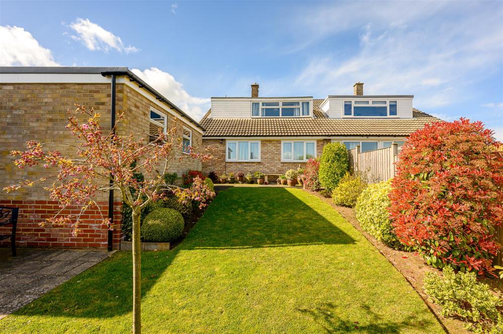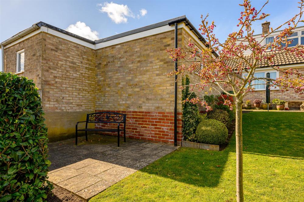 The immaculate gardens are predominantly lawned with borders, well trimmed shrubs, two seating areas and the single garage that is reached via the driveway passing to the side of the building.