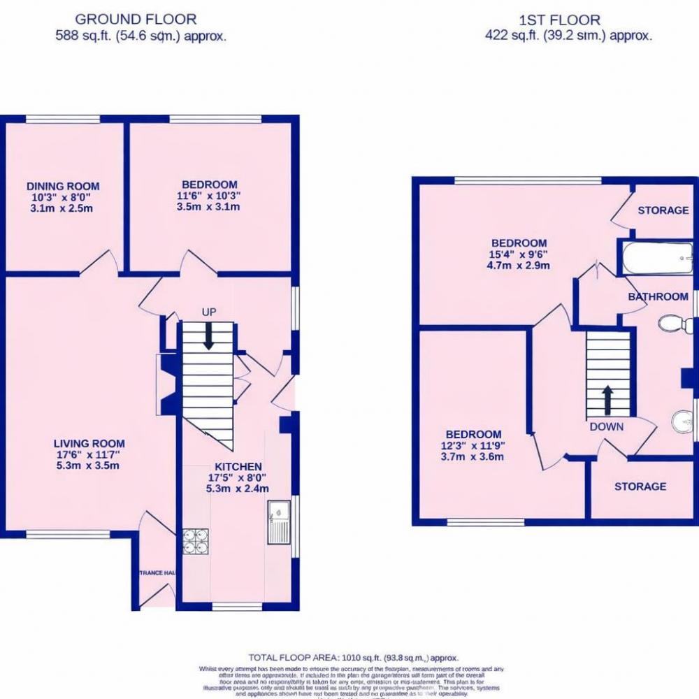 The house is in great order and offers bright, modern accommodation including a 17ft living room, separate dining room, 17ft kitchen and a ground floor double bedroom, whilst on the first floor there are two double bedrooms, bathroom and three storage areas.