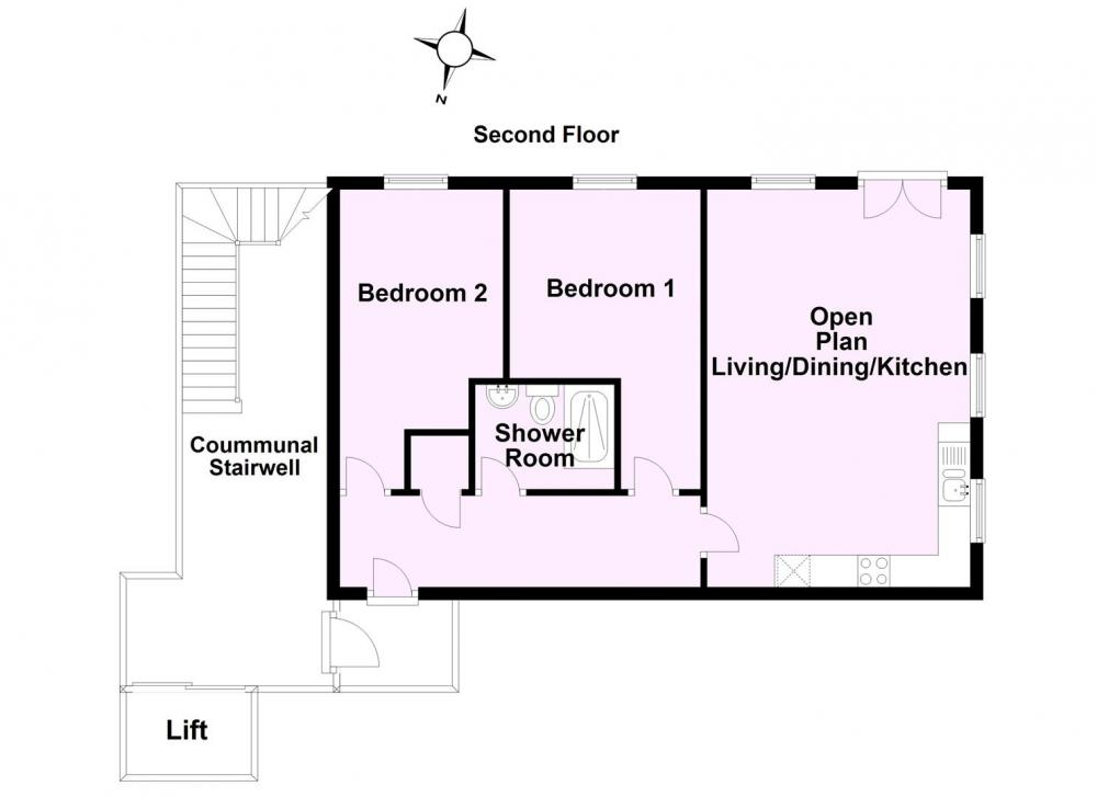 A lift or staircase take you up to the second floor where you enter the apartment's hallway that leads to the spacious 20ft living room with kitchen and dining areas. The living/dining room is well lit with dual aspect windows giving views over the city whilst the kitchen area offers a good range of fitted units with integral oven, tall fridge/freezer, ceramic hob, stainless steel splashback and extractor fan.