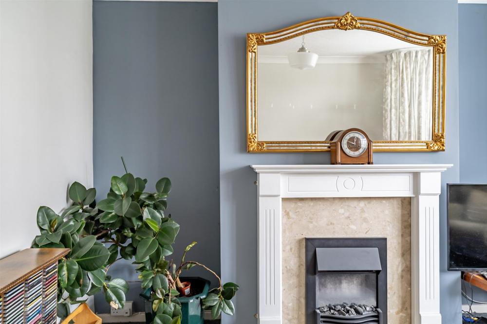 To the rear, the separate dining room offers ample space and also features a modern fireplace with electric fire. Adjacent to this is a well-equipped kitchen, complete with timber-fronted units, an integrated oven a separate gas hob with extractor, and plumbing for a washing machine.