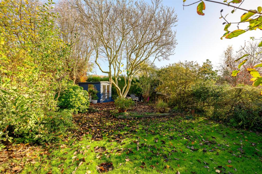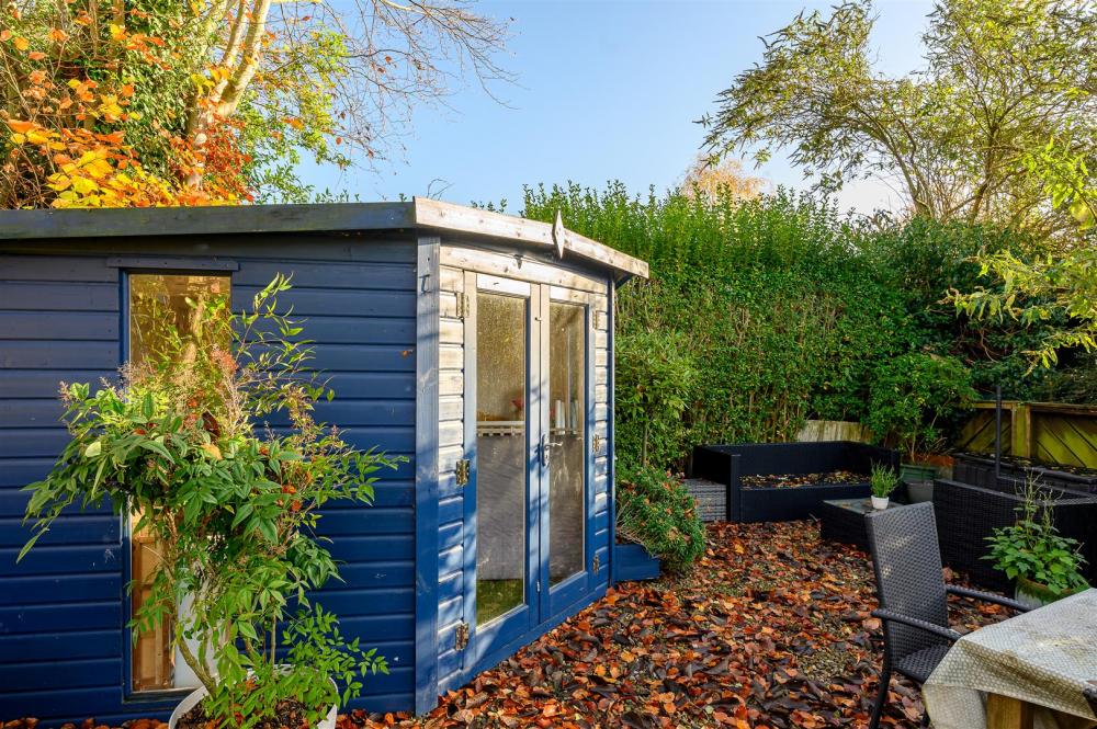 Externally, the garden offers a well-balanced mix of seating, dining, planting, and lawn areas alongside a summer house towards the end of the garden.