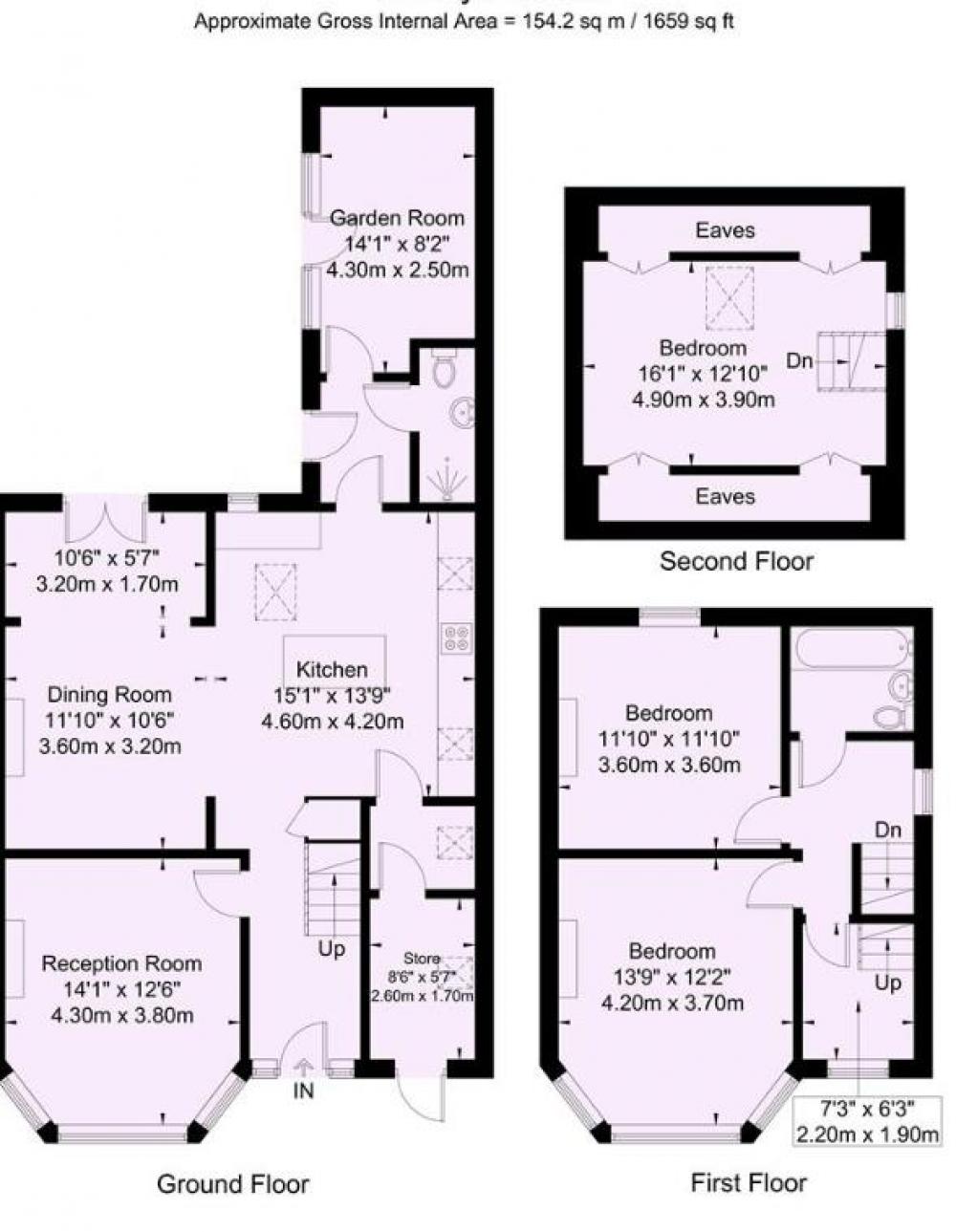 Continuing to the second floor there is a spacious double bedroom with ample eaves storage and plenty of light from Velux windows.