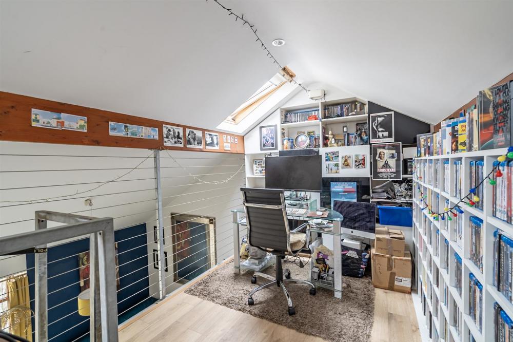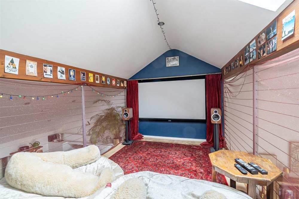 In addition, above the kitchen and bedroom is a mezzanine area, currently arranged as a cinema room, but equally suitable as an occasional bedroom or study.