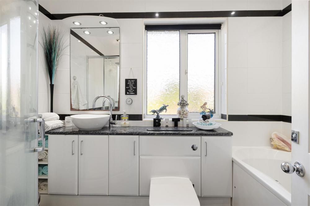 Upstairs, the spacious landing leads to two generous double bedrooms, one with fitted wardrobes, a smaller bedroom and a contemporary house bathroom complete with both a bath and a shower cubicle.