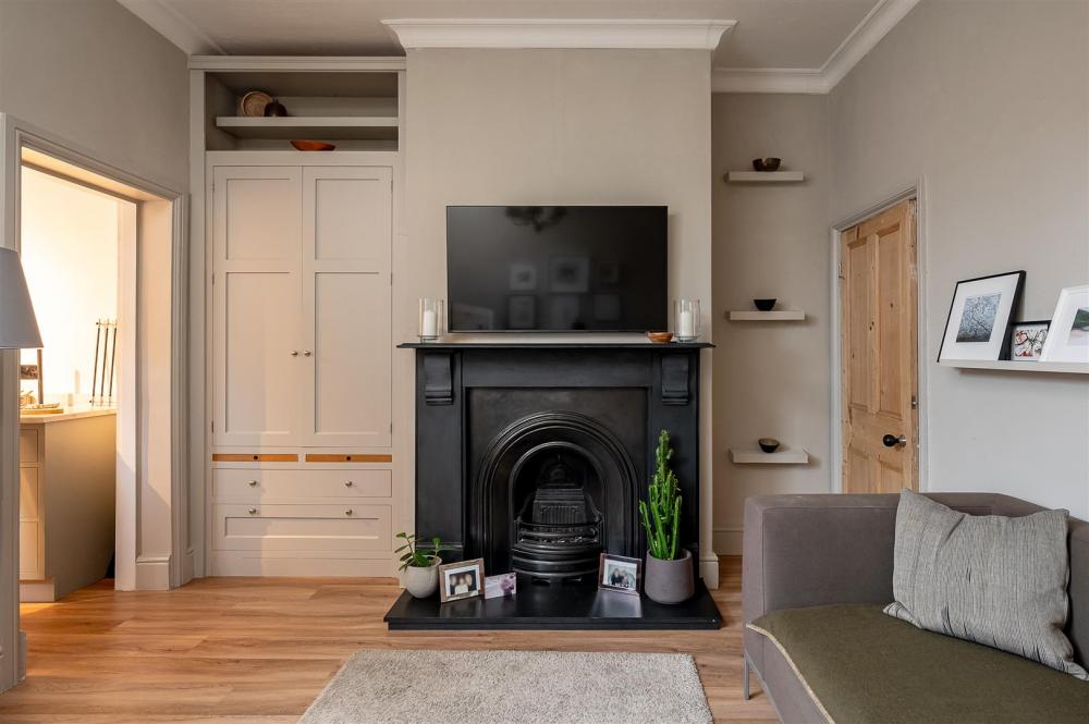 To the front of this Victorian terraced property is a small enclosed and flagged forecourt boasting a flower bed with attractive planting and climber. You then enter an entrance hall that takes you through to the dining room that retains the original Victorian fireplace with cupboards and shelves to the alcoves. Behind the dining room you will find the comfortable living room with solid flooring, the original arched fireplace with cupboard and shelving to one side and built in pantry cupboard to the other. Beyond here is the well fitted galley style kitchen with Shaker style units and quartz tops including integrated eye level ovens, Belfast sink and a separate induction hob. The ground floor is completed by small lobby with space for a washer and tumble dryer with doors to the rear courtyard and the ground floor bathroom that offers a modern white suite and shower over the bath.