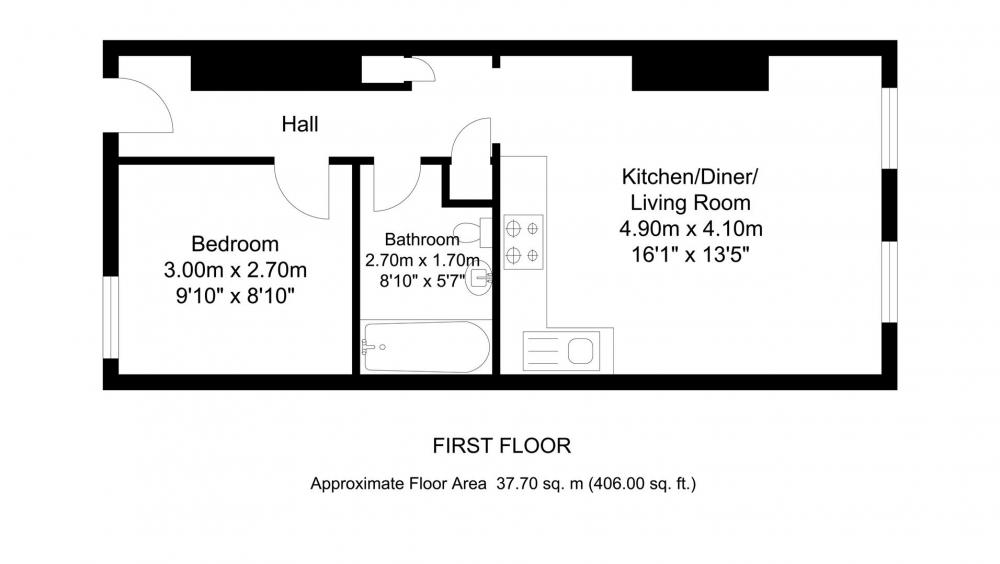 The apartment is tucked away very close to York city centre and is entered via a gated driveway and porch leading to a hall with stairs to the first floor and to the apartment itself. The apartment enjoys a good sized hallway with space for coats and shoes with doors off to a double bedroom, bathroom and the open plan living accommodation. The living area is light and airy with two large windows flooding the room with natural light, original timber flooring and in one corner is the kitchen fitted with a range of units, integral cooker and ceramic hob together with an area for a washing machine and free standing fridge freezer. Returning along the hallway is the bathroom, with modern white suite including a shower and screen over the bath, and finally to the double bedroom with space for a freestanding wardrobe.