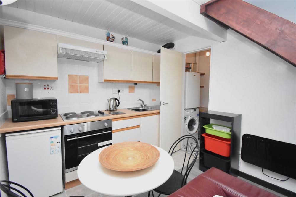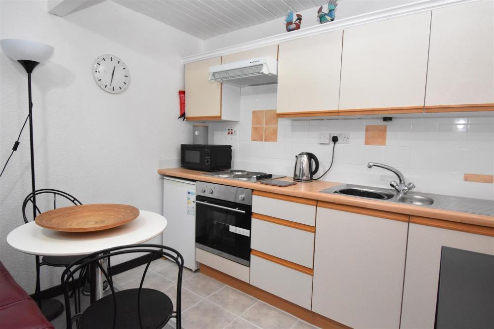 The front door leads into a small vestibule with the modern shower room off and a further door from the vestibule leads into the living area with stairs to the mezzanine sleeping accommodation. The kitchen area lies to the rear of the room and offers a range of white fronted units with an integral electric oven, electric hob and under counter fridge. There is a useful utility area to the side of the kitchen with freezer & washing machine provided. An open staircase to the side of the room leads to the mezzanine double bedroom with a small study or dressing area off.