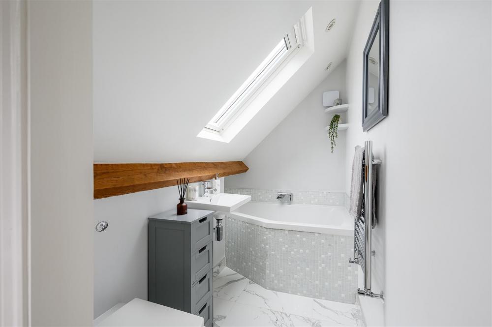 The first floor offers two generous double bedrooms, a slightly smaller double and the house shower room, whilst on the top floor is another double bedroom with en-suite bathroom tucked under the eves.