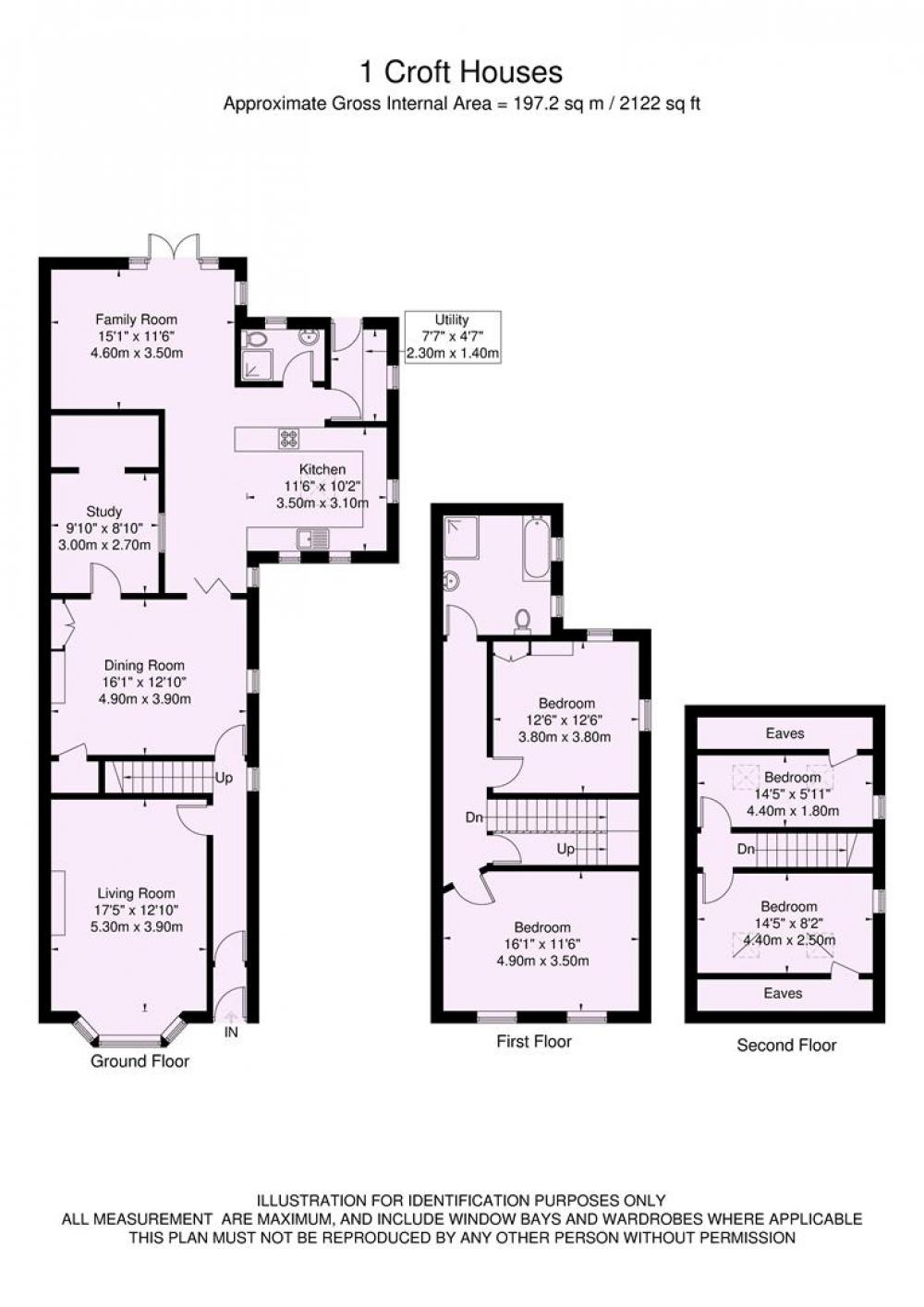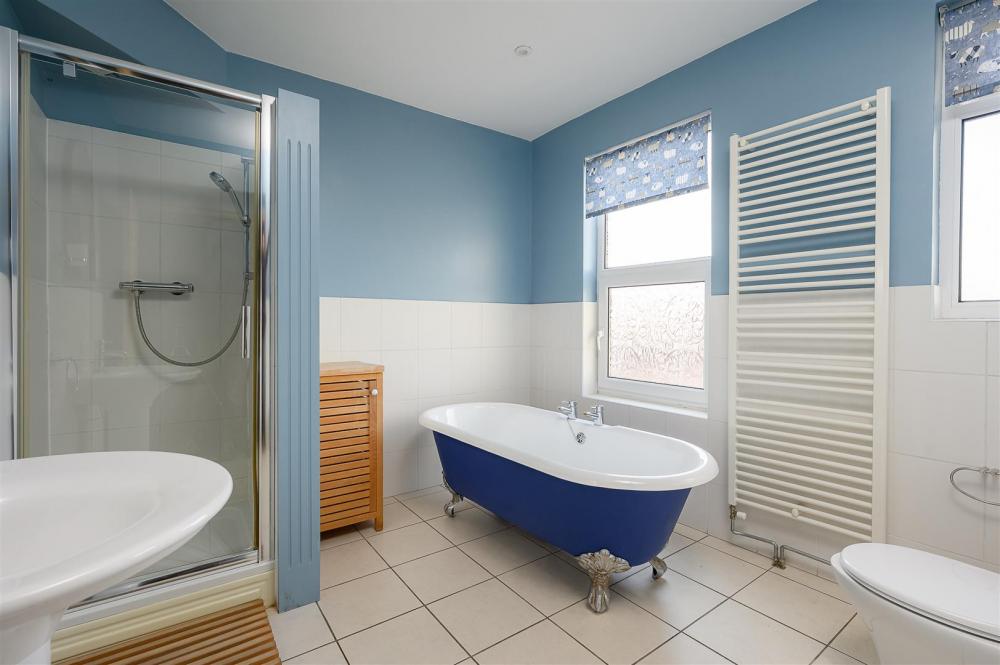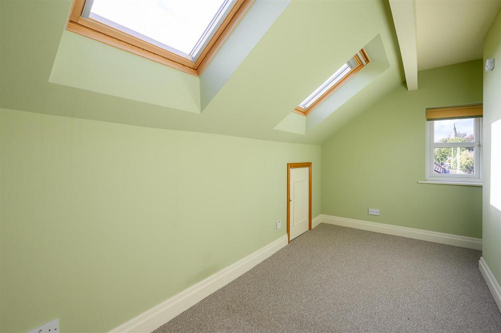On the first floor, there are two generous double bedrooms, both with original fireplaces, along with a well-appointed family bathroom fitted with a freestanding roll-top bath, separate shower cubicle, and quality fittings. The second floor offers two further bedrooms with eaves storage, suitable for children, guests, or home working.