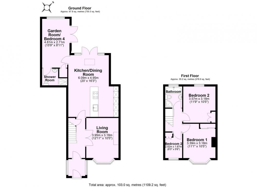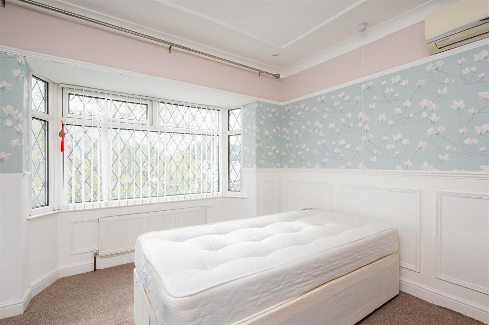 The first floor provides two double bedrooms, one with a bay window, a smaller bedroom or office and the house bathroom.