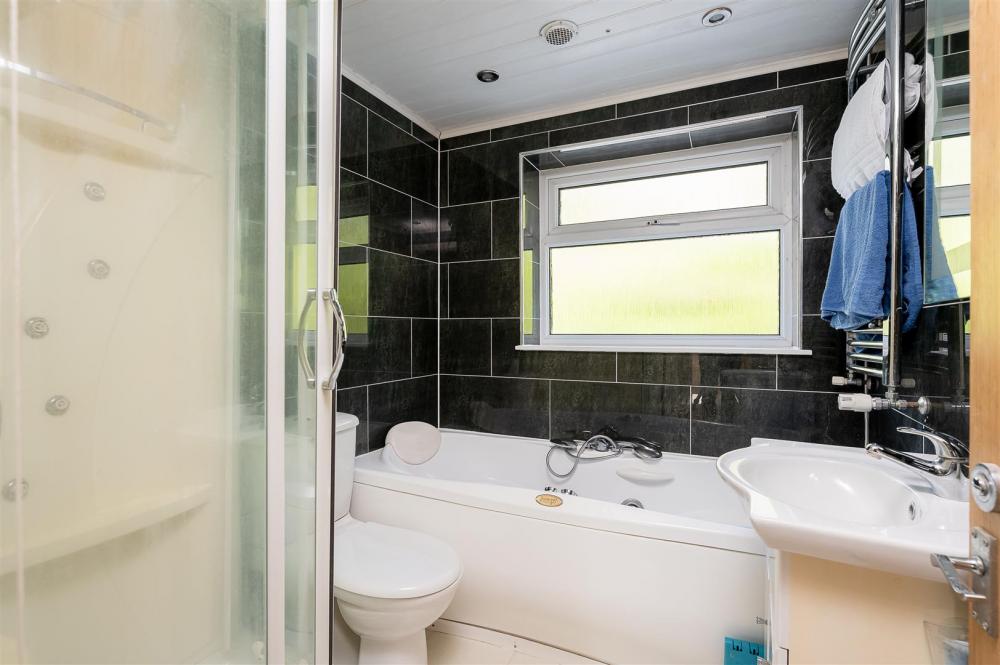 The large brick set forecourt has been enclosed within ornate securing railings and provides ample parking space before leading to the long garage and entrance to the house. Here you step into a reception vestibule and hallway before double doors invite you into the cosy living room with leaded bay window to the front and a feature fireplace with arched alcoves and cupboards to either side. The hallway then leads you through to the hub of the house which has been extended to the rear to create an impressive family room and kitchen area. The room is bright and airy with a lantern sky light, double doors with full height side windows and offers excellent space for dining and relaxing. The kitchen is in one corner of the room and is fitted with an impressive range of units incorporating a tall fridge freezer, eye level oven and microwave and a central island with ceramic hob and contemporary extractor divides the kitchen from the dining area. To the side of the kitchen is a further extension that offers a downstairs bedroom (or garden room) with en-suite shower room and glazed French doors out to the rear.