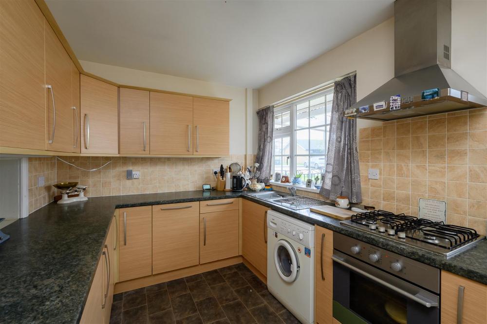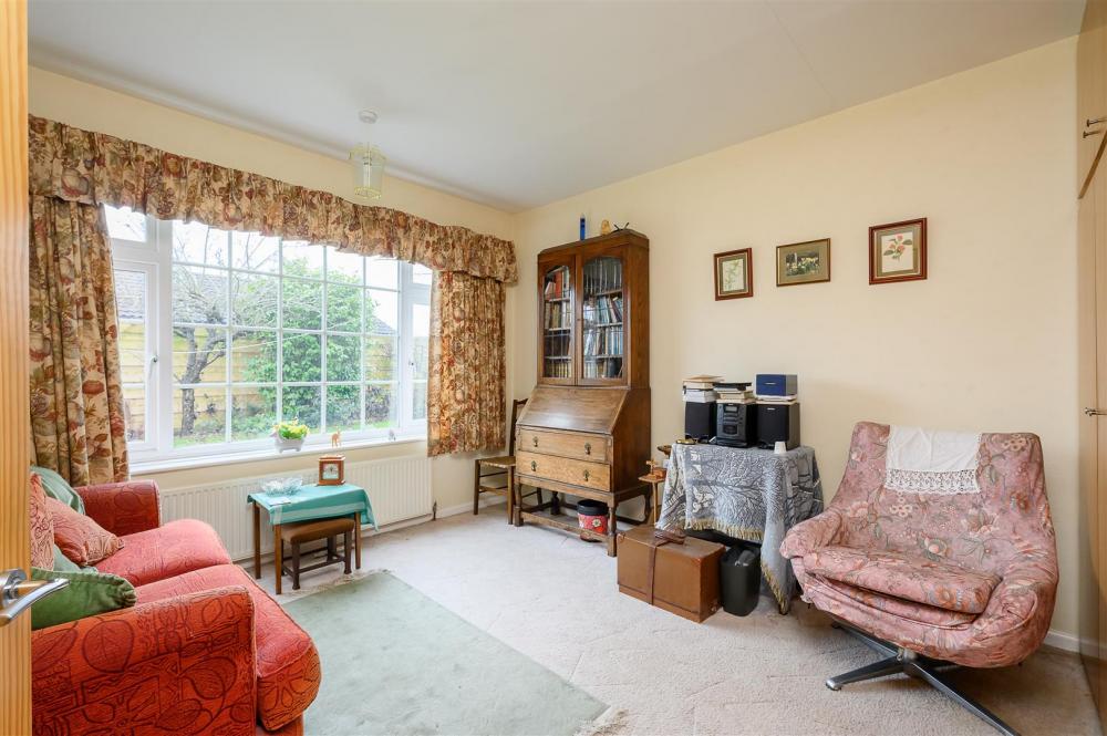 Set back behind an open lawned front garden the driveway leads up to the front entrance, which opens into a hallway, leading to the spacious living and dining room. This bright and welcoming space features a fireplace with living flame gas fire and a wide front-facing bay window, offering pleasant views across the garden and allowing plenty of natural light to flood the room.