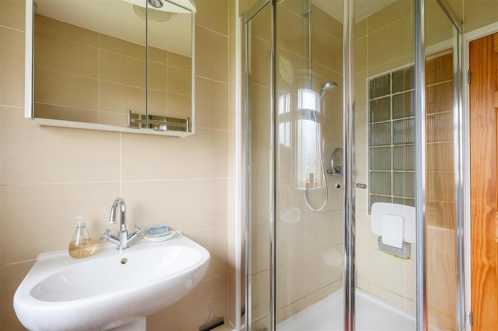 An internal hallway leads to two generous double bedrooms, both benefiting from fitted cupboards and outlooks to the rear of the property, along with a shower room. A further versatile bedroom provides excellent flexibility and could also be used as a dining room or home office