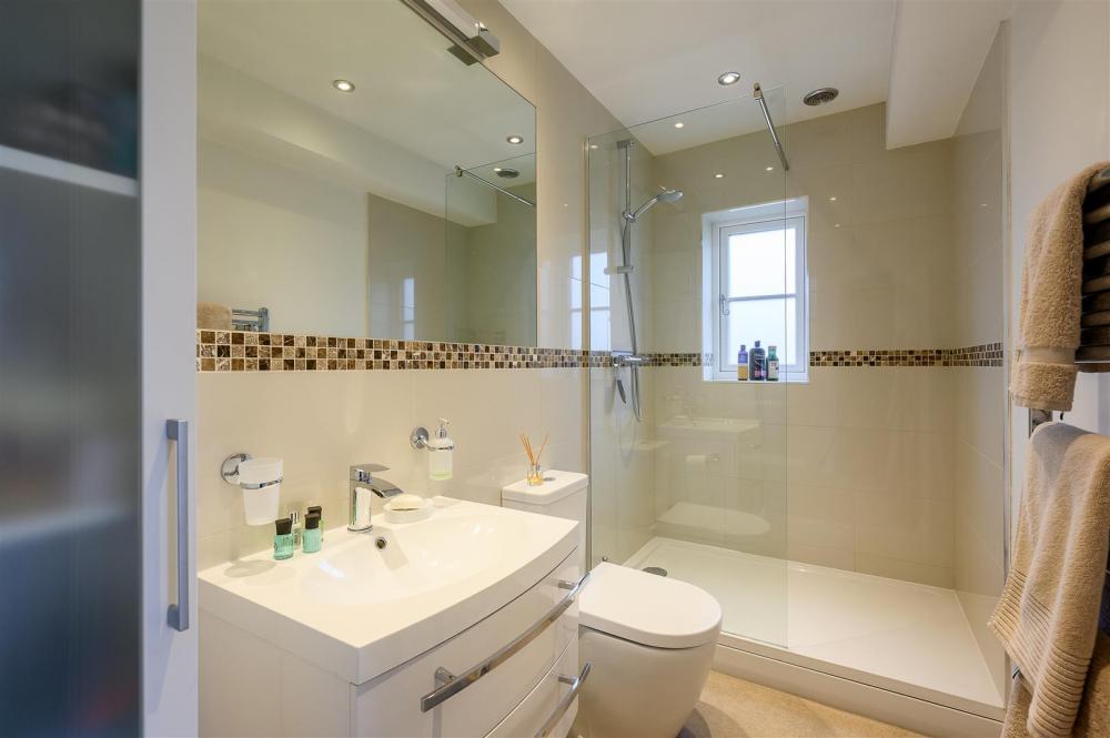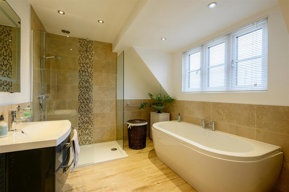 Upstairs, the sense of light and space continues, with a bright landing overlooking the entrance hall below. There are four generously sized bedrooms, one of which is currently utilised as a second study and enjoys access to a large terrace balcony. Two further bedrooms benefit from stylish en-suite shower rooms and Juliet balconies. The first floor is completed by a contemporary house bathroom, fitted with both a bath and separate shower.